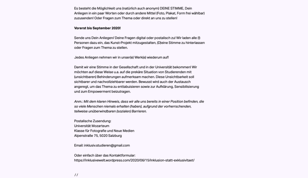 Von 2021-2022 habe ich die Seite als Plattform des Referats für Disability an der Universität Salzburg fortgeführt.