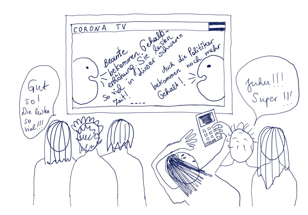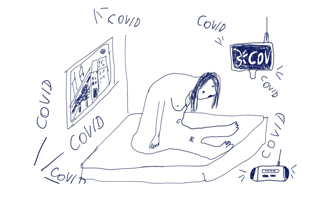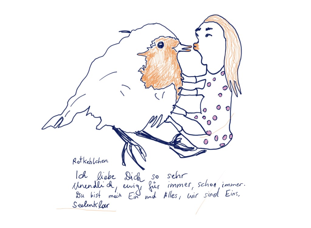 Die digitalen (Comic-) Zeichnungen entstehen seit Ausbruch der Covid-Pandemie als tägliche, skizzenhafte Praxis. Ich greife hier Situationen oder Beobachtungen der beschriebenen schwarzen Löcher auf. Gleichzeitig aber auch sehr persönliche, alltägliche Erlebnisse. Des weiteren beschäftige ich mich mit Themen und täglichen Erfahrungen, die mir viel Kraft geben, so wie die Verbindung zu den Tieren.