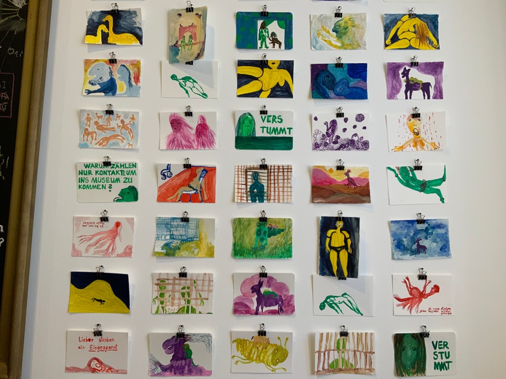 Eingesperrt, Serie von 75 Aquarellen auf Papier, zu verschenken an die Besucher*innen