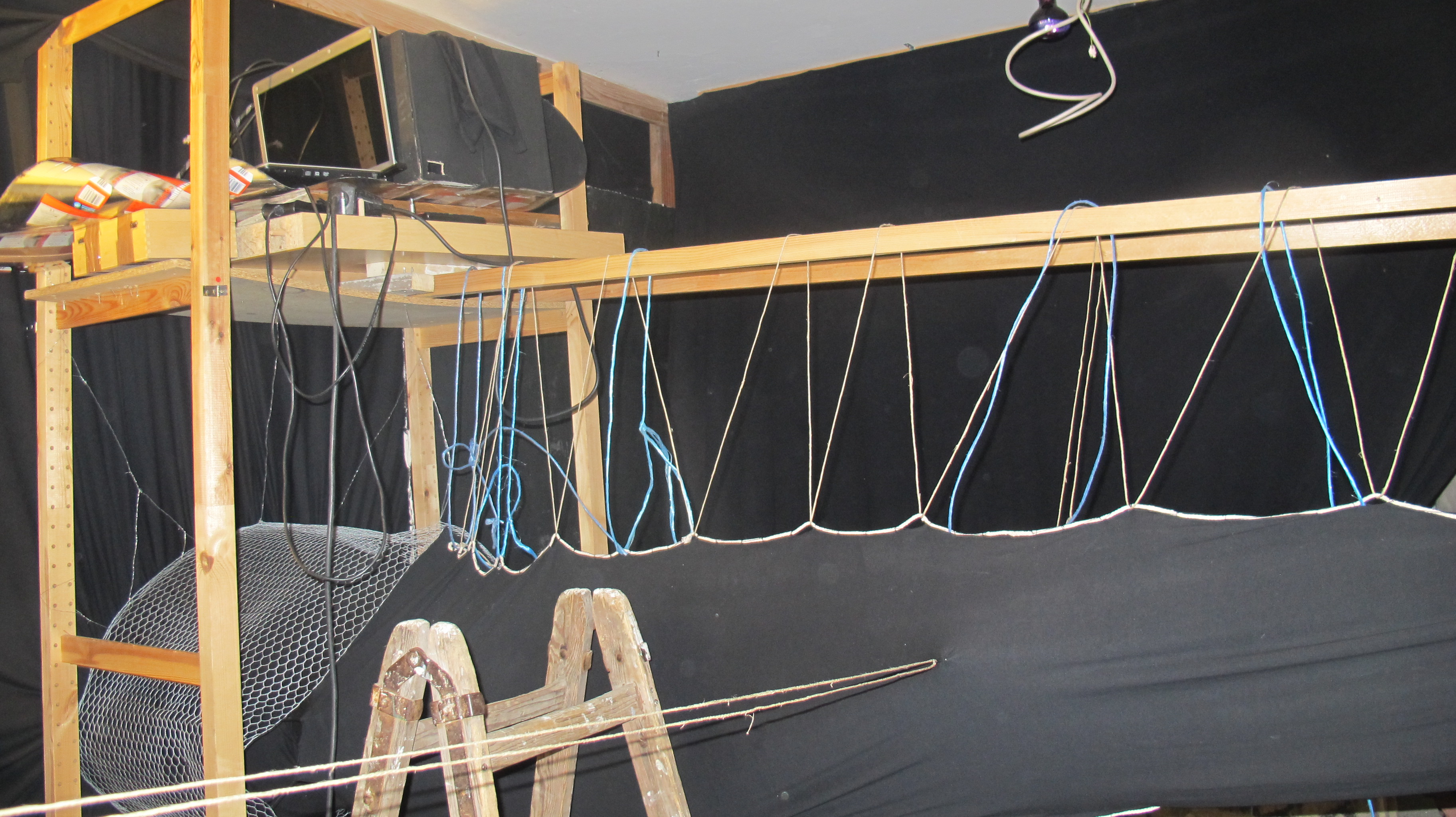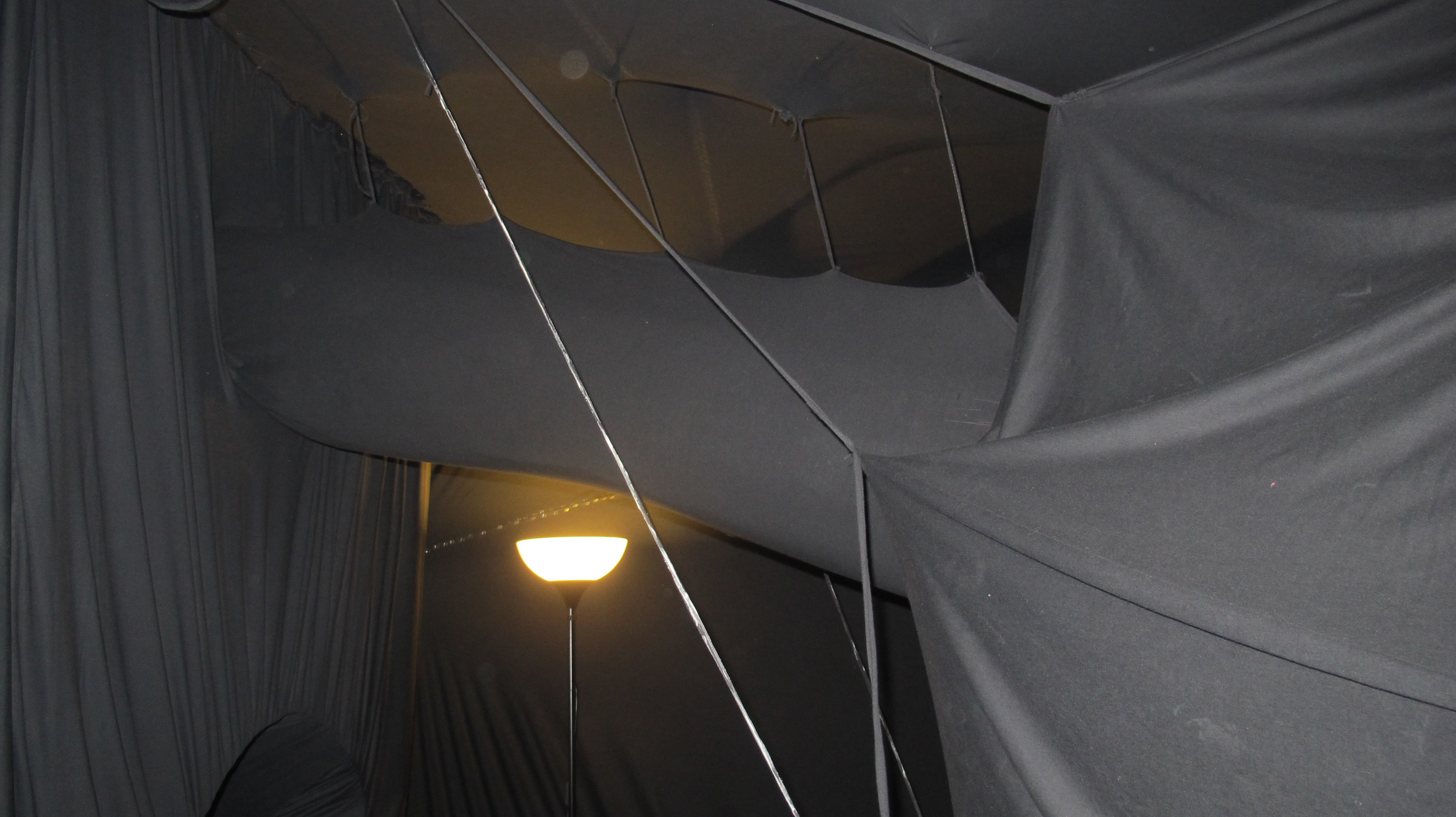 Raum und begehbare Blase zusammen ca. 40 qm, gänzlich mit schwarzem Stoff verkleidet (komplett abgedunkelt)
