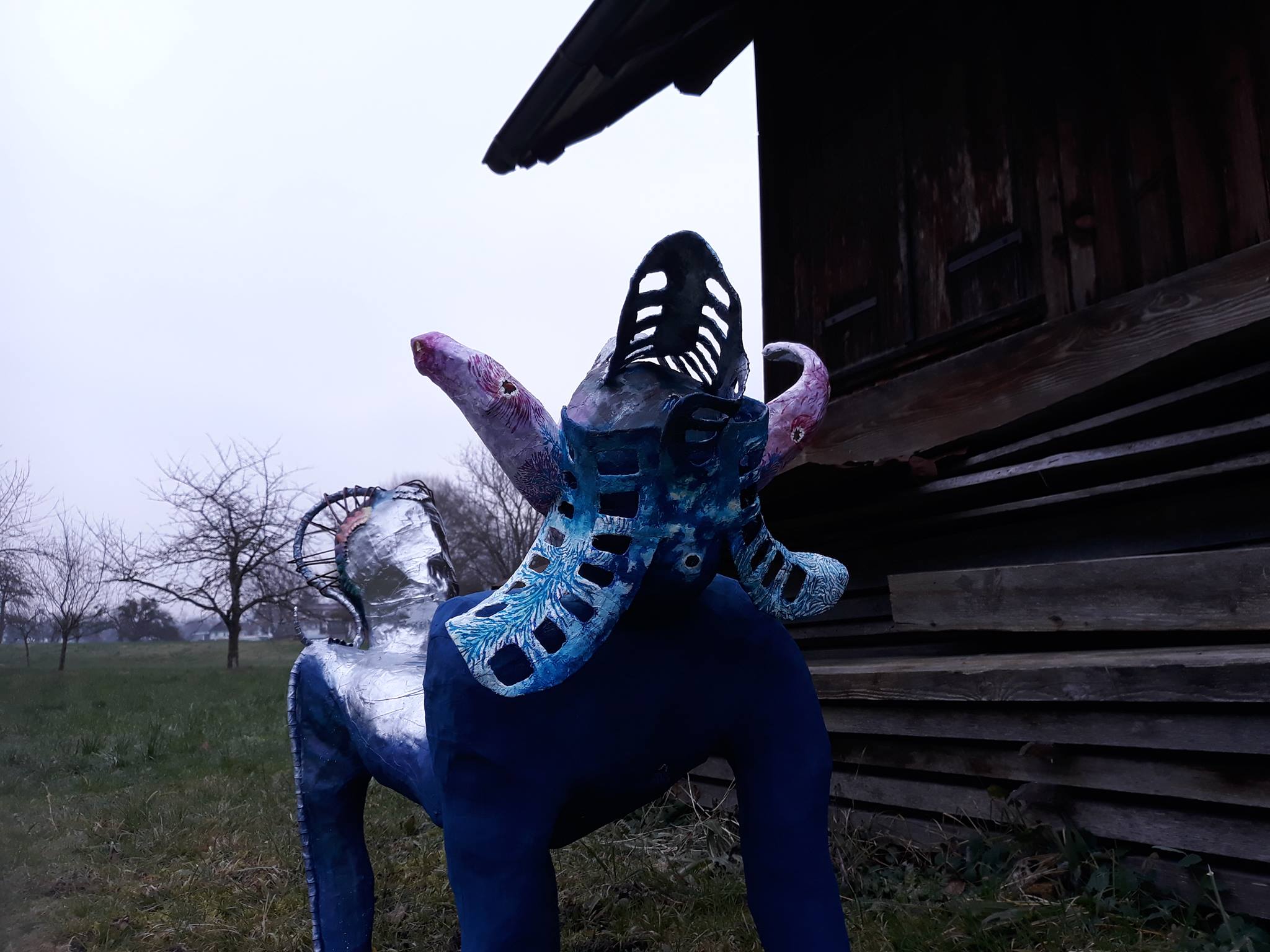 Wirrklicht präsentieren eine fantasievolle Skulptur, deren Form an ein zweiköpfiges Wesen aus Tier, Natur und menschlichen Elementen erinnert. Die Figur scheint den Mysterien des Lebens zu entstammen, indem sie Assoziationen vergangener und zukünftiger, latent wirkender Entstehungsphasen jenseits unserer Alltagsimagination weckt. Räume entstehen, die sich im Innen und im Außen auf vielfältigste Weise neu verknüpfen. Die Skulptur möchte die unsichtbar-universellen, dennoch kraftvollsten Welten der Natur mit dem Unbekannten und Unbewussten der menschlichen Allgegenwärtigkeit verbinden. Die Ambition der Künstlerinnen ist es, die ungewiss bleibenden Bilder jedes einzelnen Betrachters herauszufordern, indem sie an die sinnlich-wahrnehmbaren Ebenen der eigenen Geist,- Gedanken,- Erlebens- und vor allem Fantasie-Welt der Betrachter andocken.